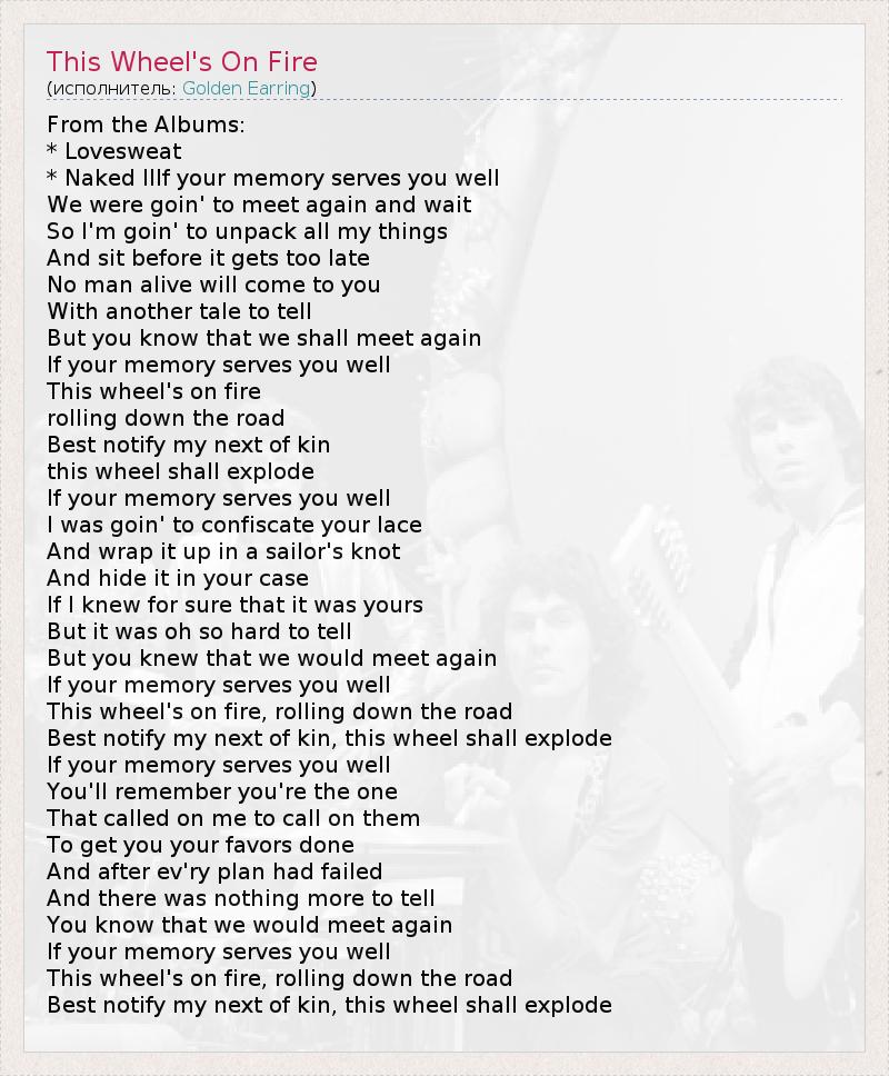 А как ты думаешь, о чем песня "This Wheel's On Fire" ?