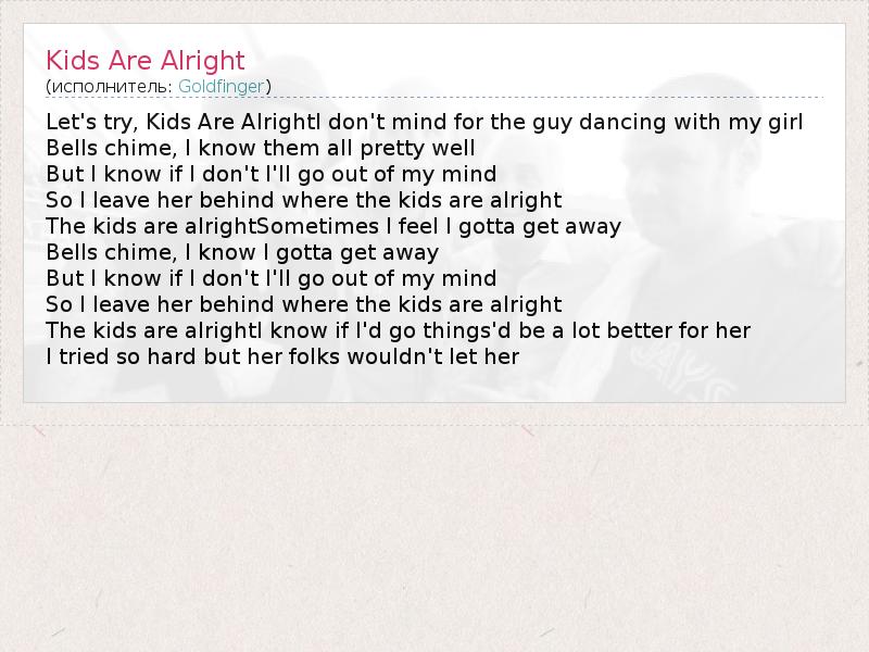 А как ты думаешь, о чем песня "Kids Are Alright" ?