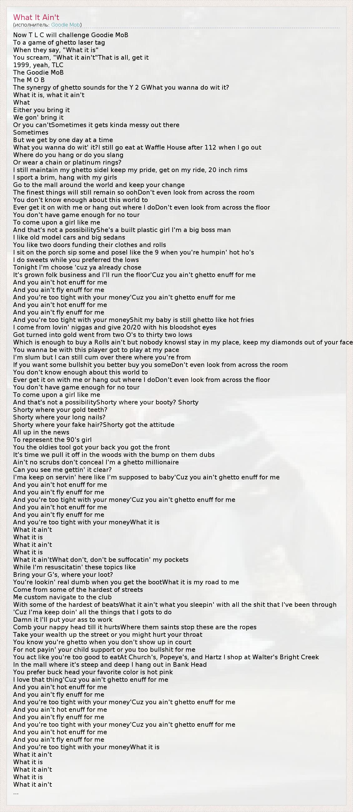 А как ты думаешь, о чем песня "What It Ain't" ?