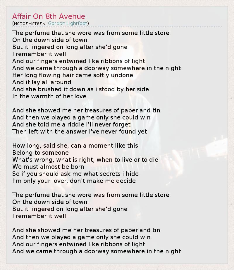 А как ты думаешь, о чем песня "Affair On 8th Avenue" ?