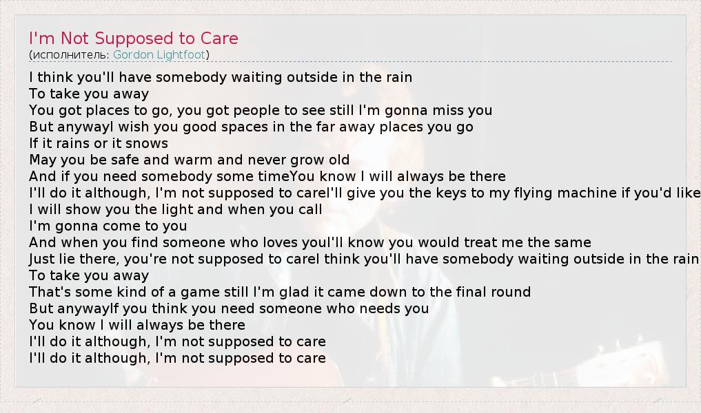А как ты думаешь, о чем песня "I'm Not Supposed to Care" ?