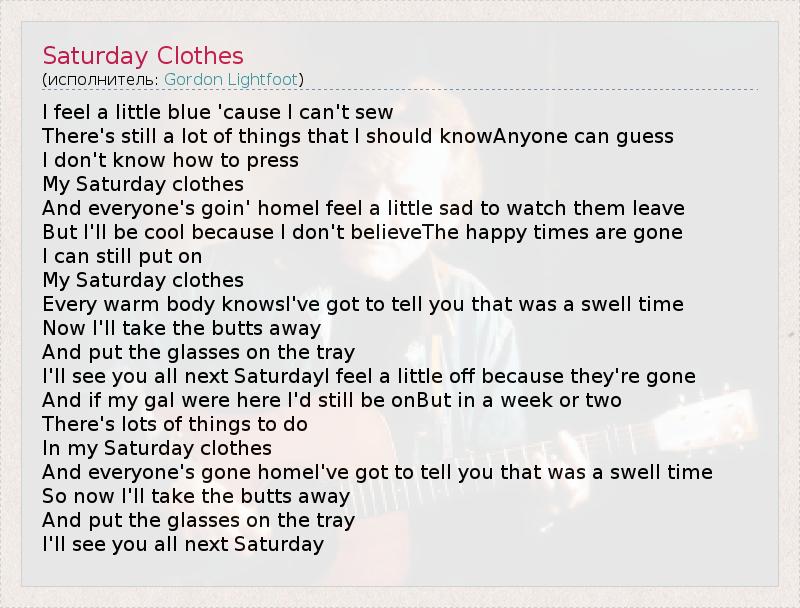 А как ты думаешь, о чем песня "Saturday Clothes" ?