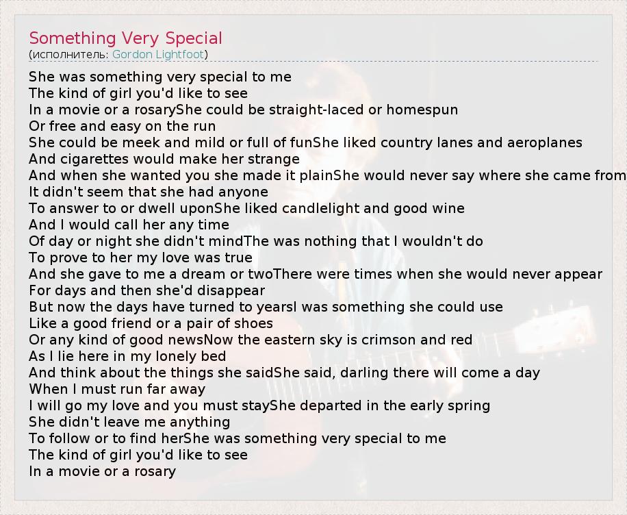 А как ты думаешь, о чем песня "Something Very Special" ?