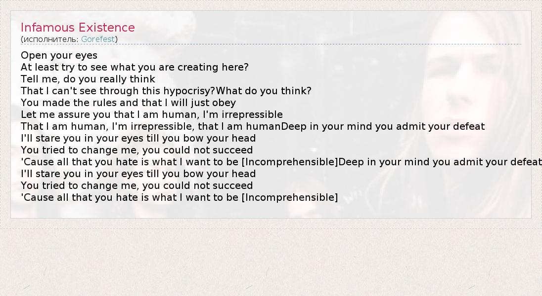 А как ты думаешь, о чем песня "Infamous Existence" ?