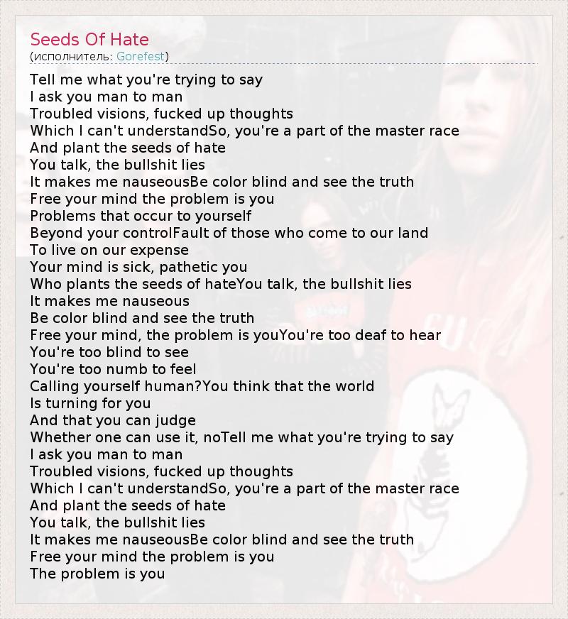 А как ты думаешь, о чем песня "Seeds Of Hate" ?