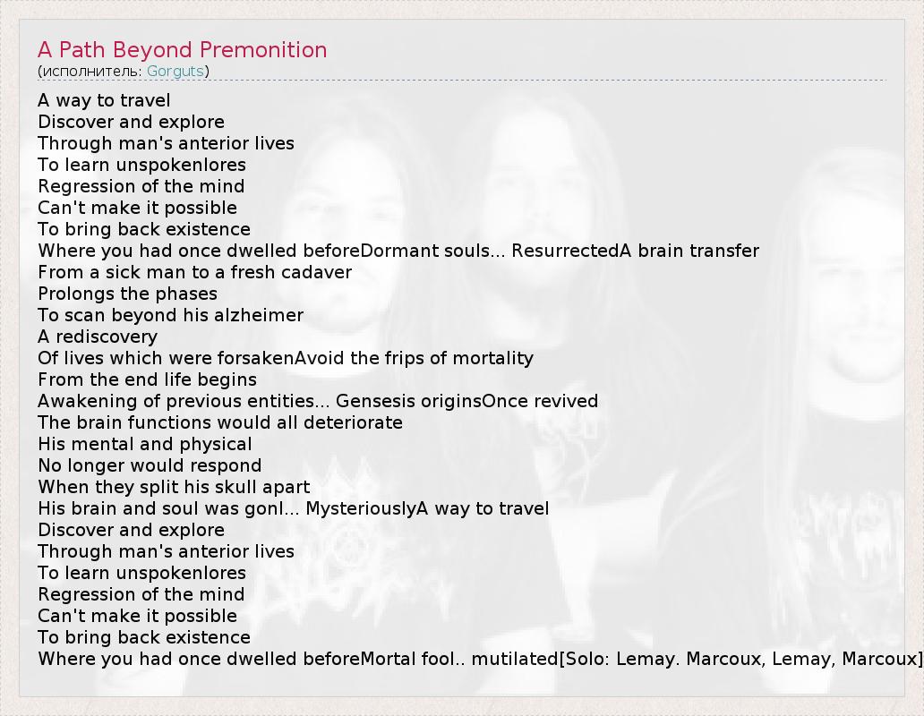 ГлавнаяИсполнителиGorgutsA Path Beyond Premonition