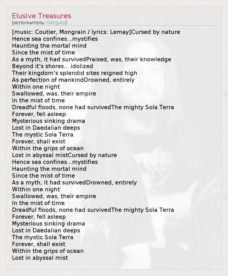 А как ты думаешь, о чем песня "Elusive Treasures" ?