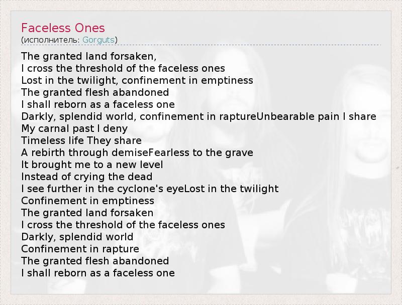 А как ты думаешь, о чем песня "Faceless Ones" ?
