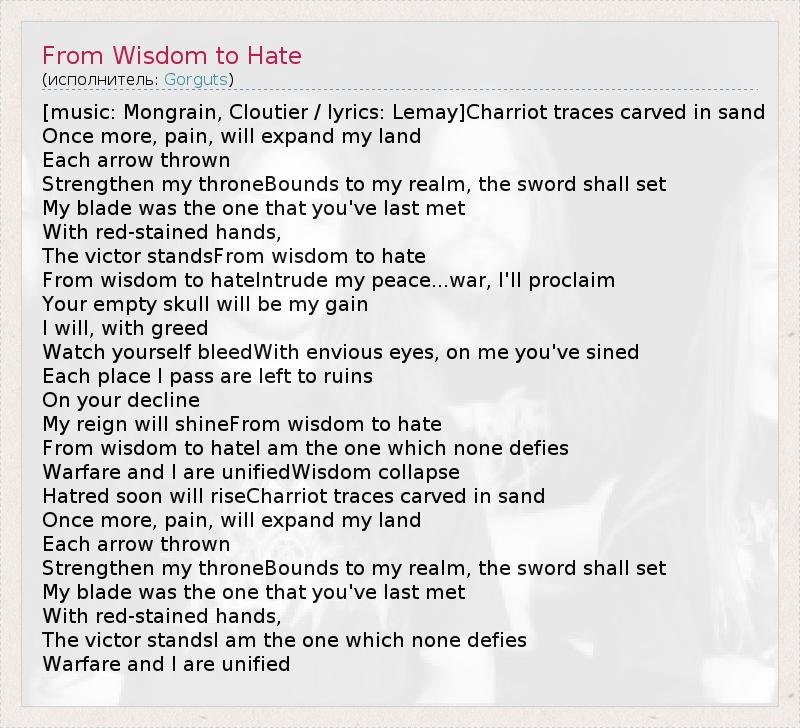 А как ты думаешь, о чем песня "From Wisdom to Hate" ?