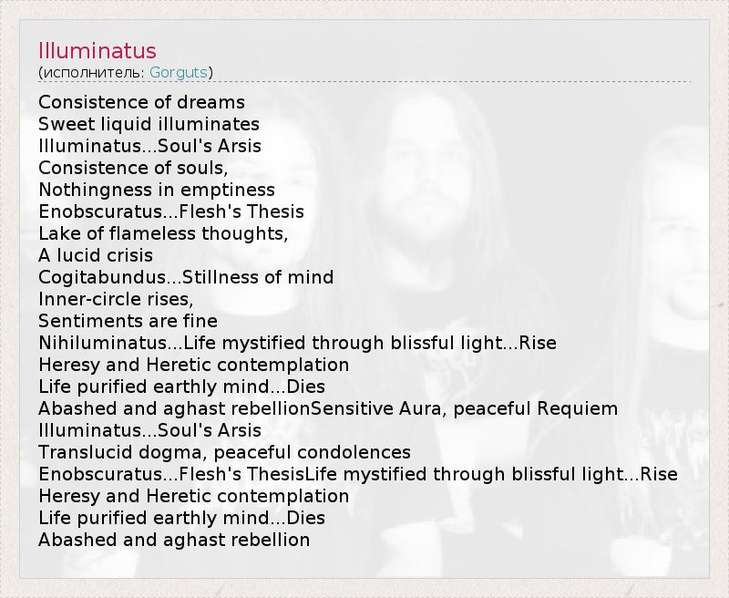 А как ты думаешь, о чем песня "Illuminatus" ?