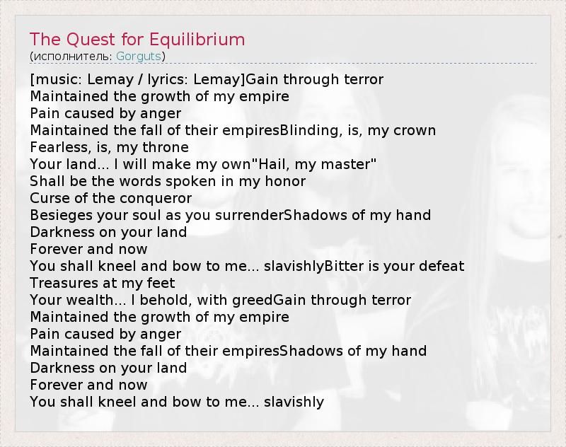А как ты думаешь, о чем песня "The Quest for Equilibrium" ?