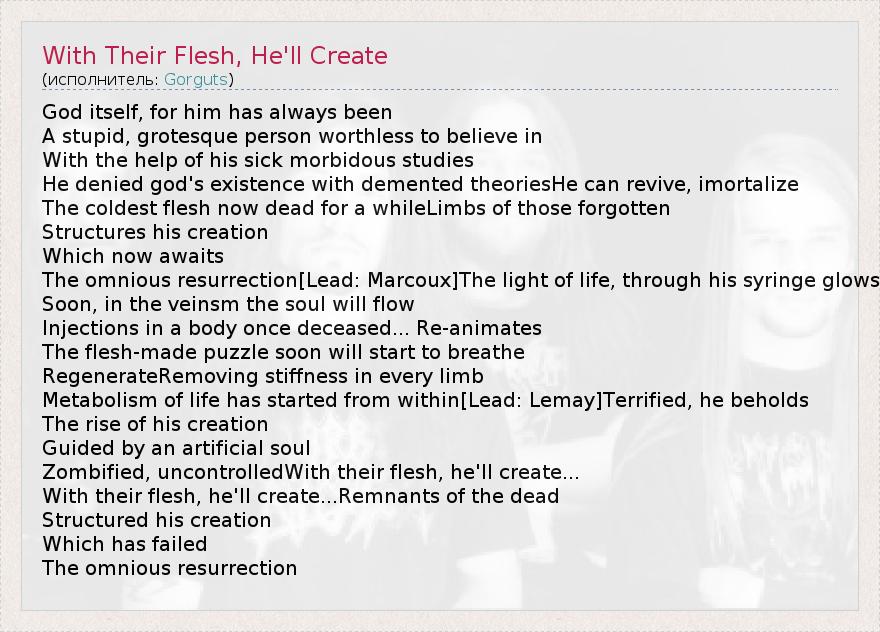 ГлавнаяИсполнителиGorgutsWith Their Flesh, He'll Create
