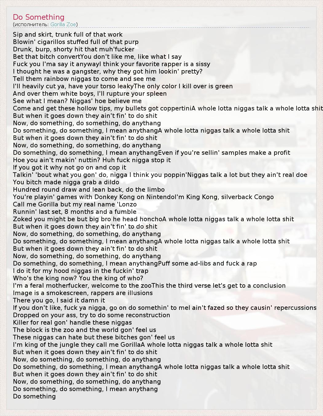 Do something, do something, I mean anythangA whole lotta niggas talk a whole lotta shit