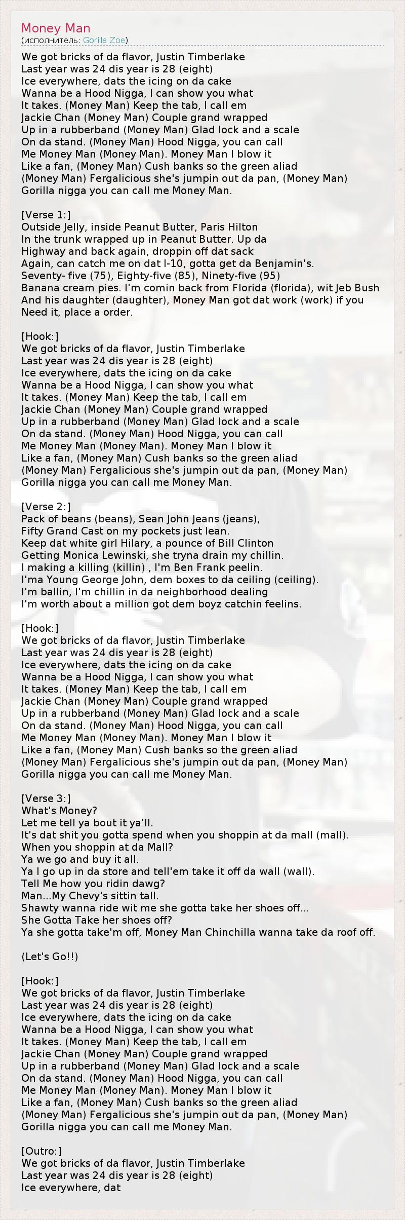 Gorilla ниггер вы можете называть меня Деньги человек .