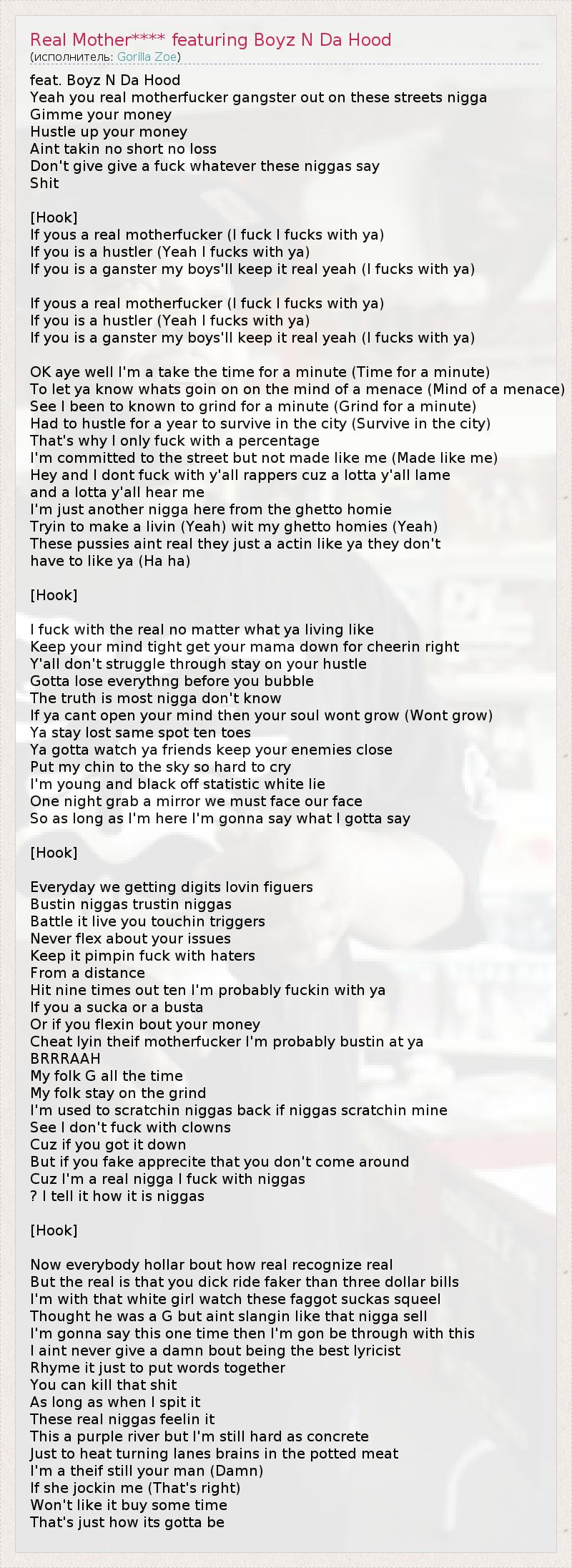 ГлавнаяИсполнителиGorilla ZoeReal Mother**** featuring Boyz N Da Hood