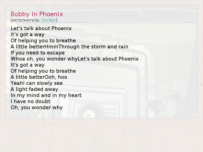 Whoa oh, you wonder whyLet's talk about Phoenix