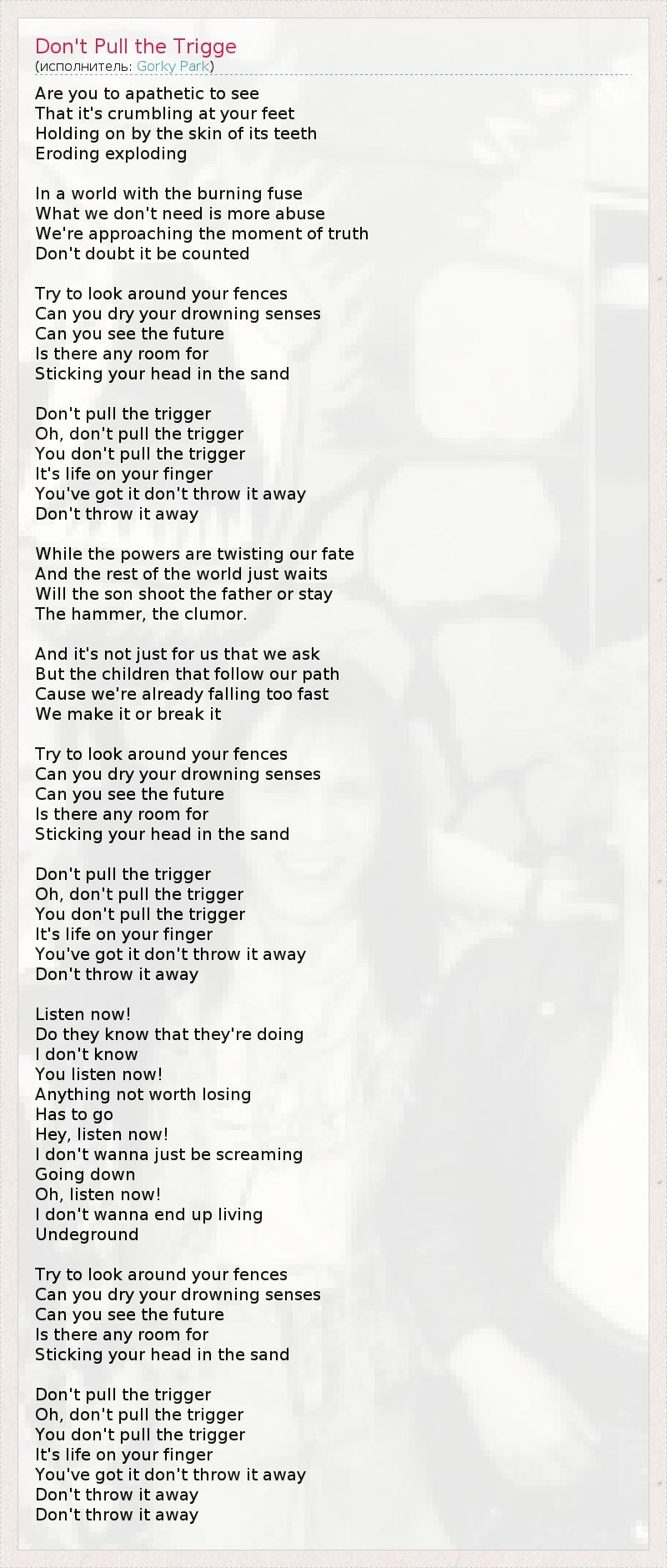 А как ты думаешь, о чем песня "Don't Pull the Trigge" ?