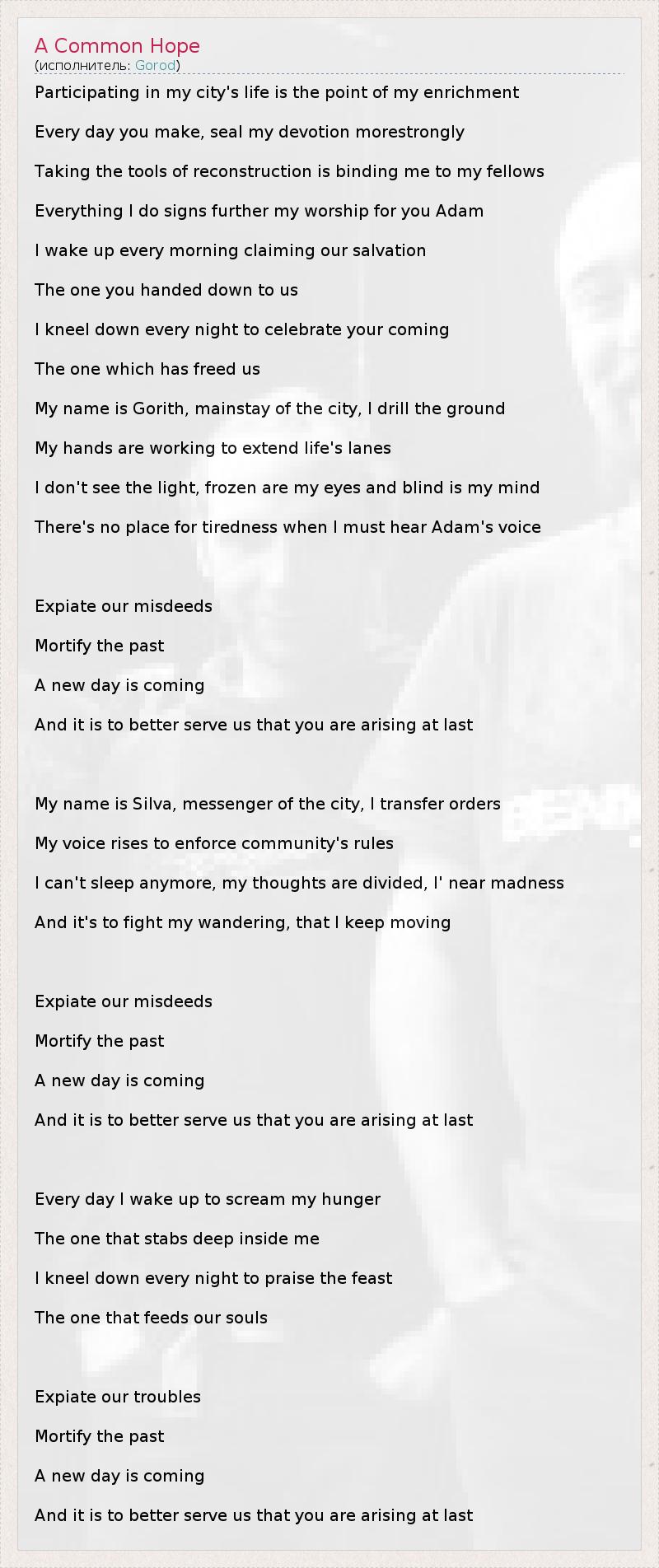 А как ты думаешь, о чем песня "A Common Hope" ?