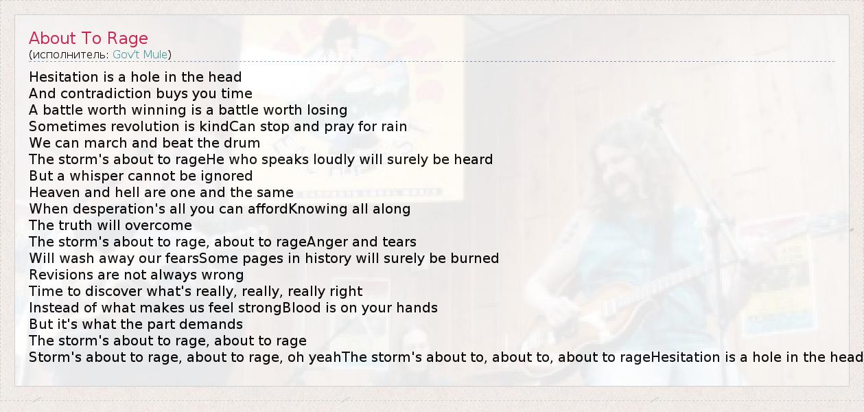 А как ты думаешь, о чем песня "About To Rage" ?
