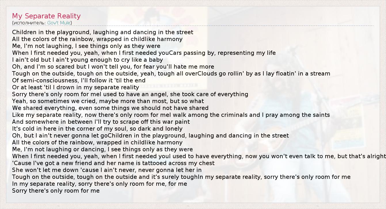 А как ты думаешь, о чем песня "My Separate Reality" ?