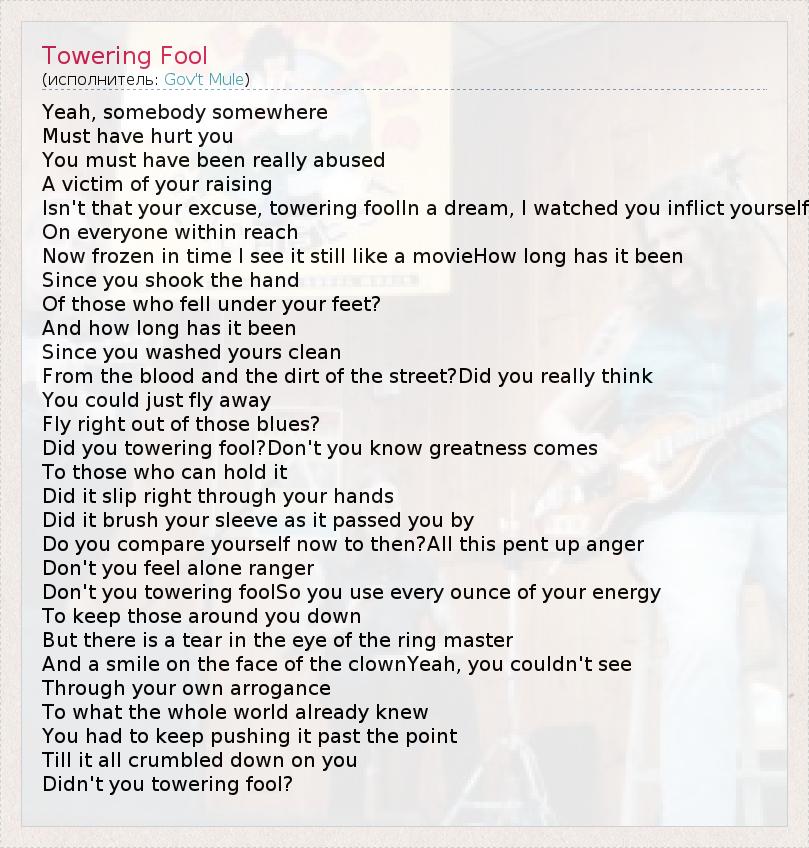А как ты думаешь, о чем песня "Towering Fool" ?