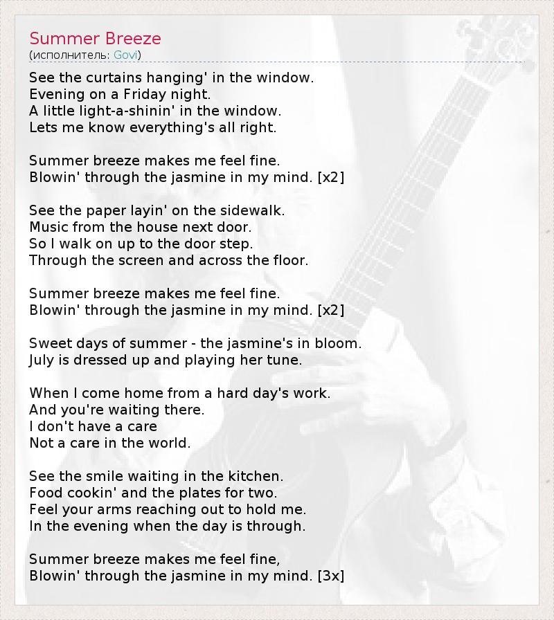 А как ты думаешь, о чем песня "Summer Breeze" ?