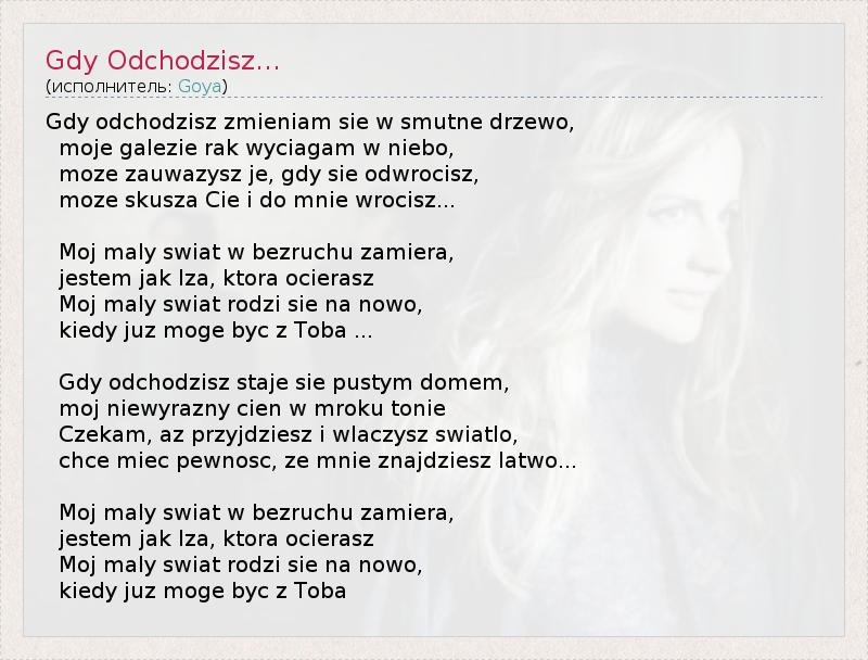 А как ты думаешь, о чем песня "Gdy Odchodzisz..." ?