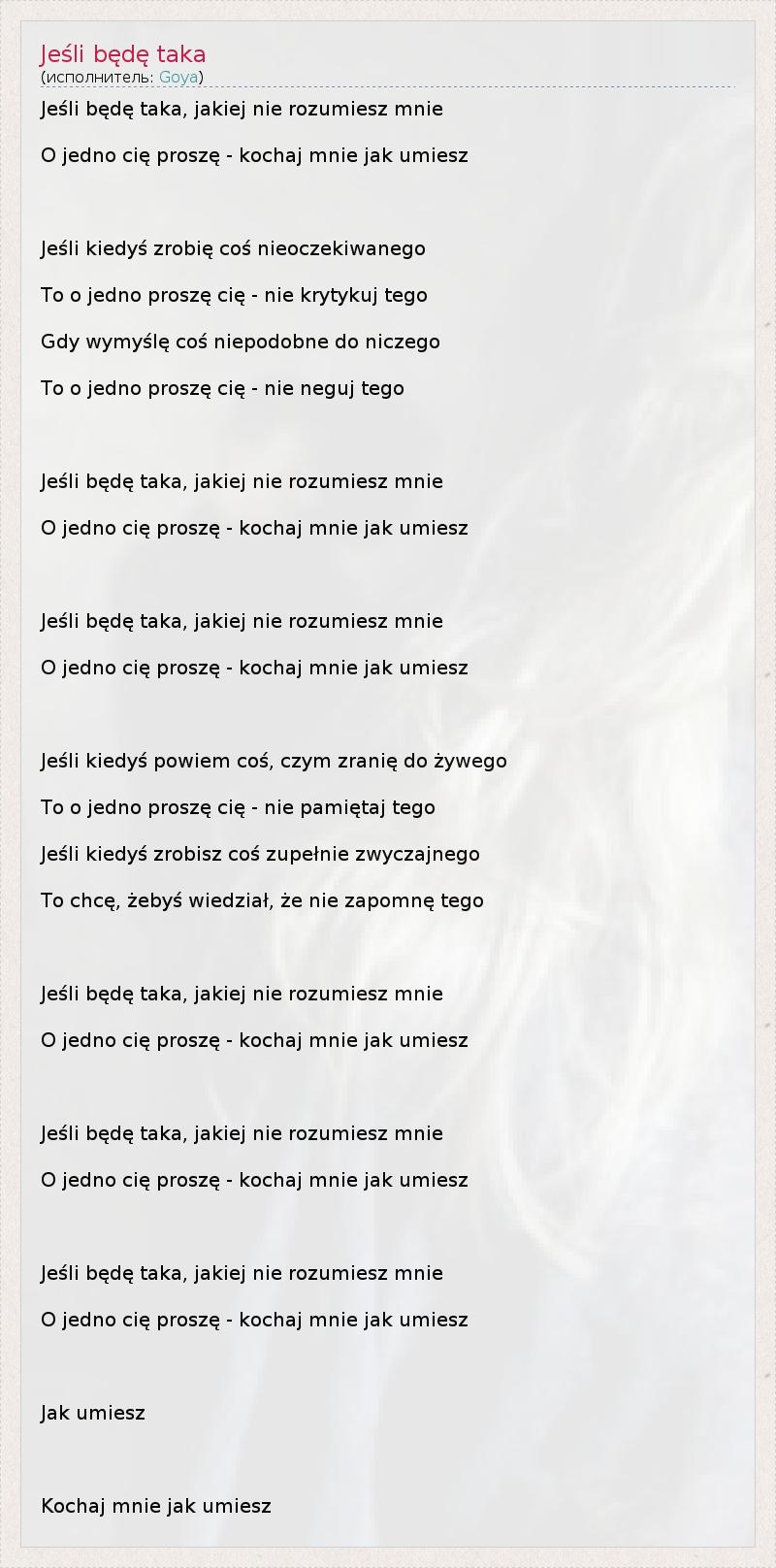 ГлавнаяИсполнителиGoyaJeśli będę taka