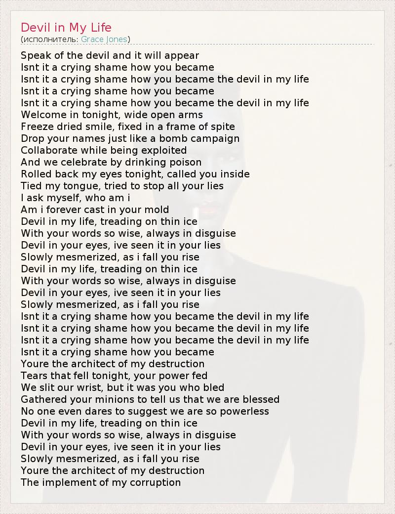 А как ты думаешь, о чем песня "Devil in My Life" ?