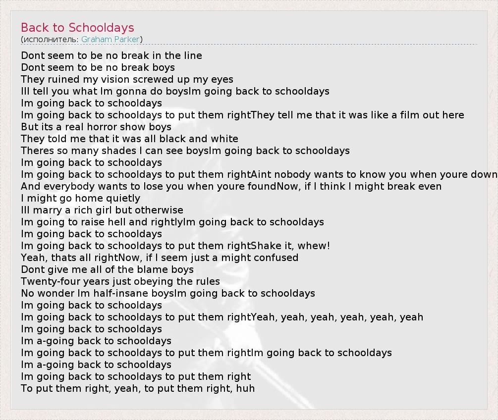 А как ты думаешь, о чем песня "Back to Schooldays" ?