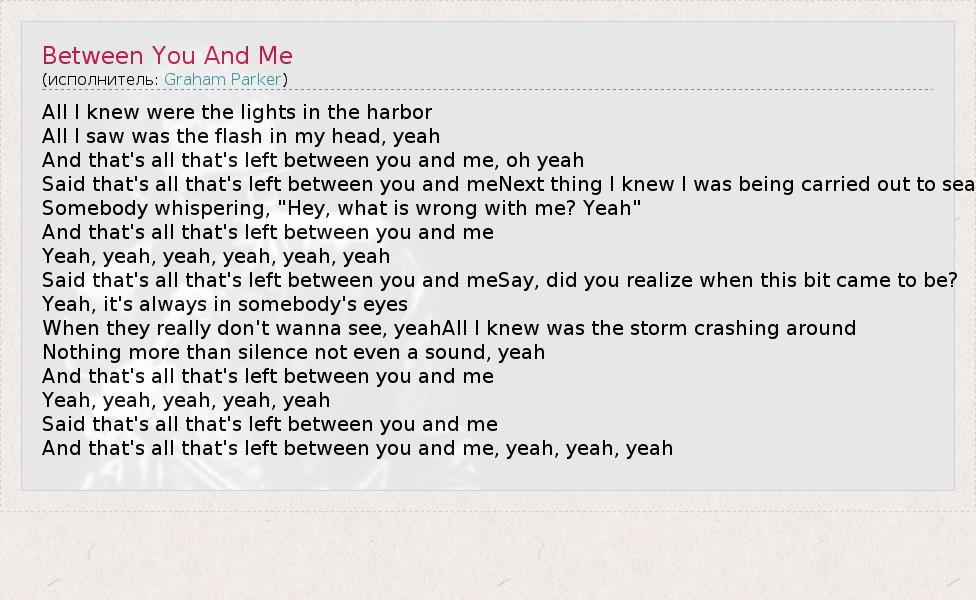 А как ты думаешь, о чем песня "Between You And Me" ?