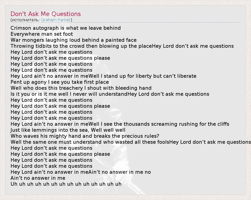 А как ты думаешь, о чем песня "Don't Ask Me Questions" ?