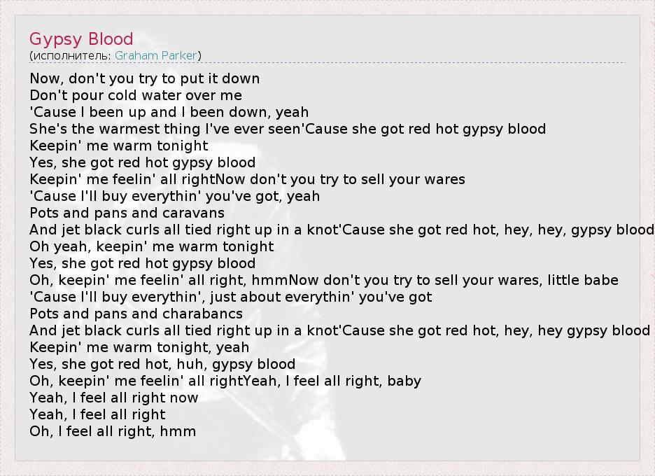 А как ты думаешь, о чем песня "Gypsy Blood" ?