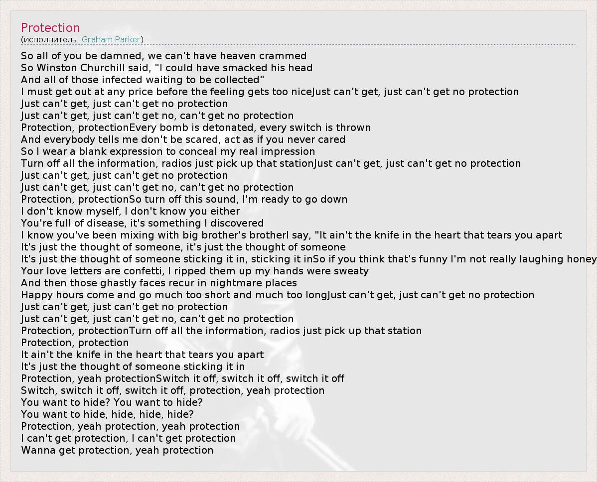Turn off all the information, radios just pick up that stationJust can't get, just can't get no protection