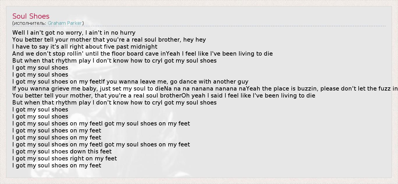 А как ты думаешь, о чем песня "Soul Shoes" ?