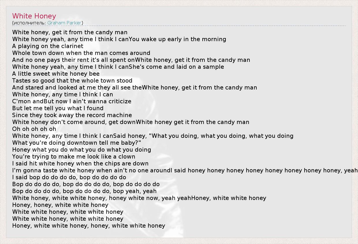 And stared and looked at me they all see theWhite honey, get it from the candy man