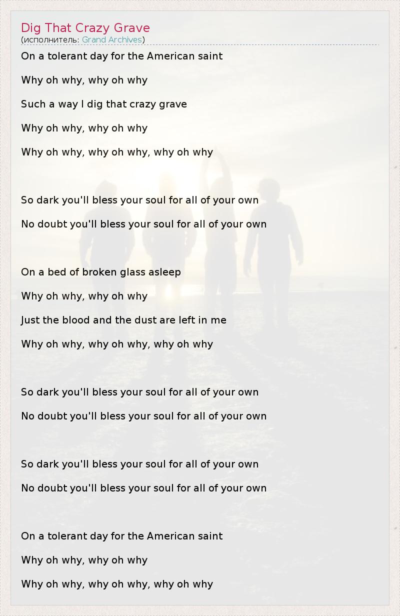 А как ты думаешь, о чем песня "Dig That Crazy Grave" ?