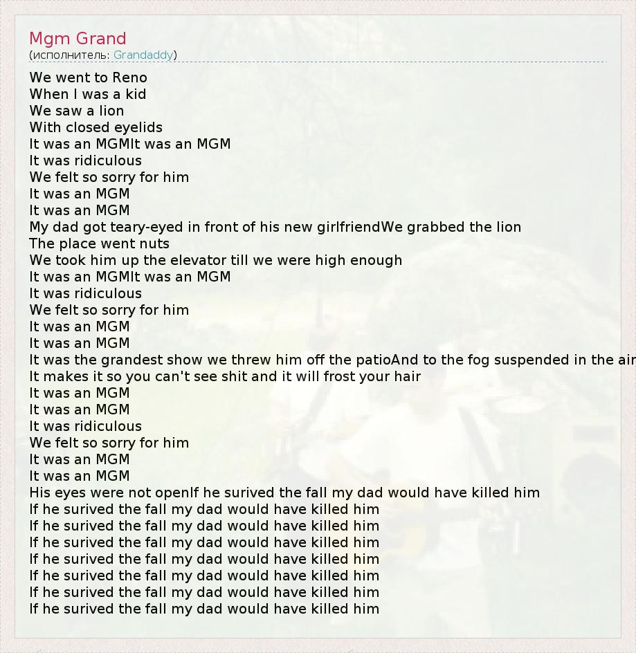 А как ты думаешь, о чем песня "Mgm Grand" ?