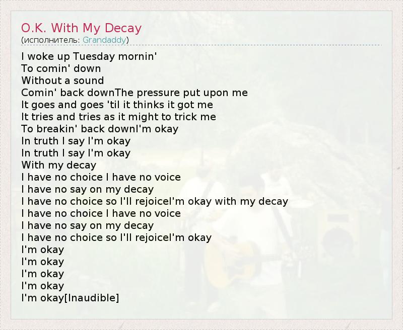 А как ты думаешь, о чем песня "O.K. With My Decay" ?
