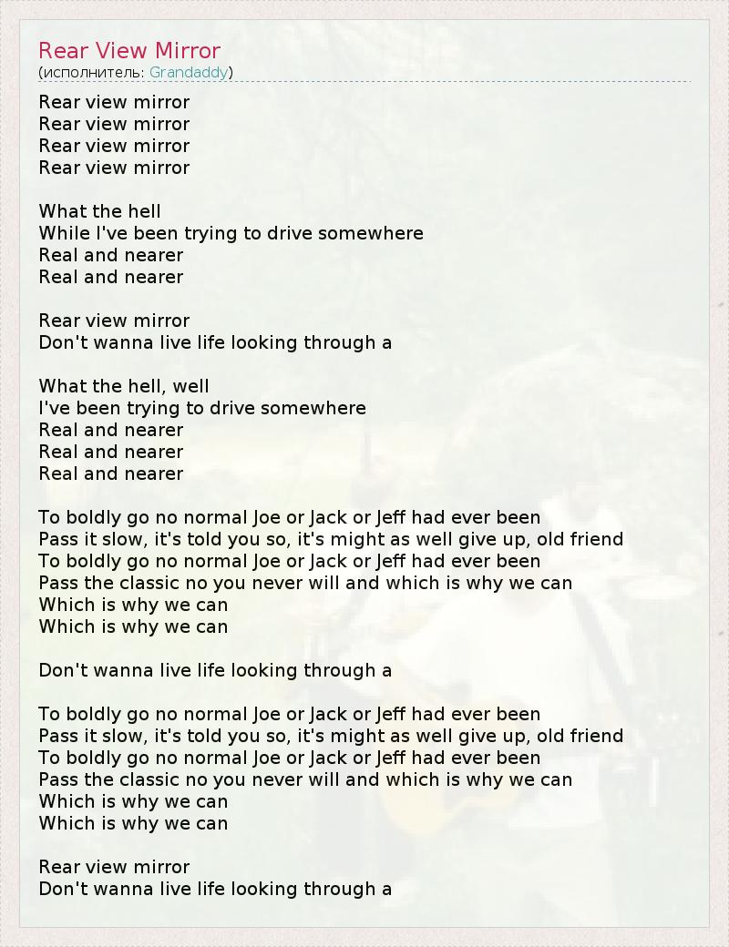 А как ты думаешь, о чем песня "Rear View Mirror" ?