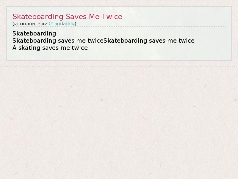 А как ты думаешь, о чем песня "Skateboarding Saves Me Twice" ?