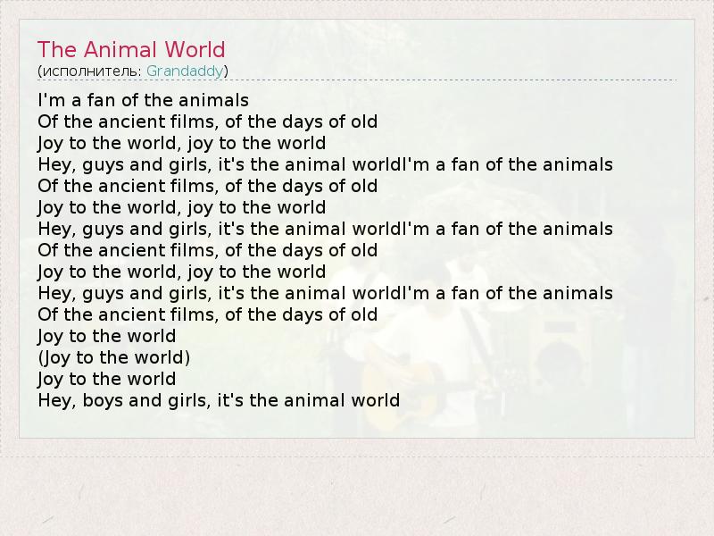 Hey, guys and girls, it's the animal worldI'm a fan of the animals