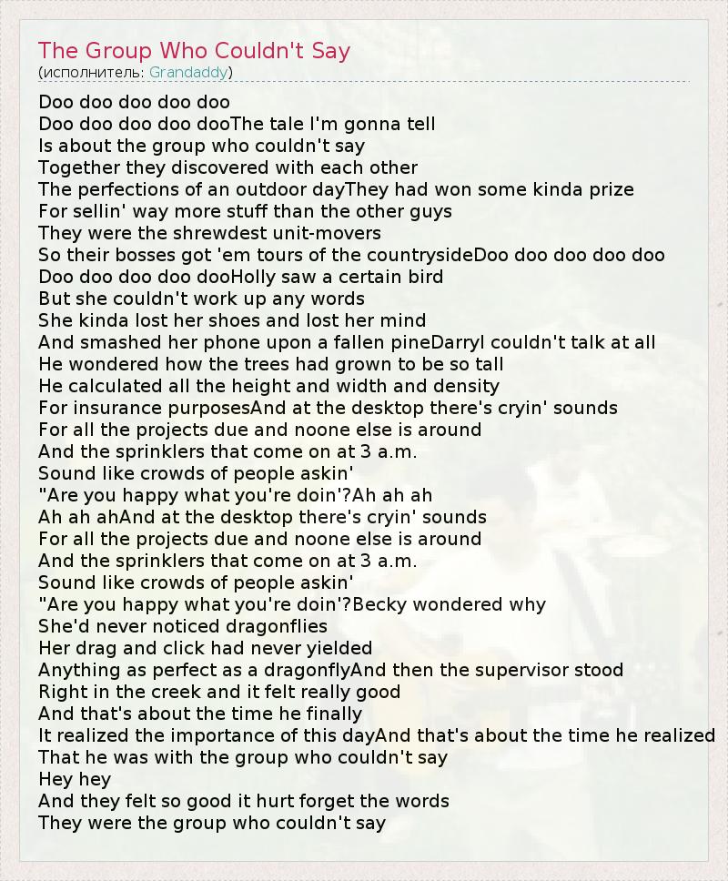 А как ты думаешь, о чем песня "The Group Who Couldn't Say" ?