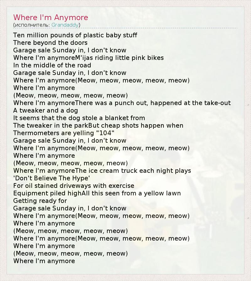 А как ты думаешь, о чем песня "Where I'm Anymore" ?