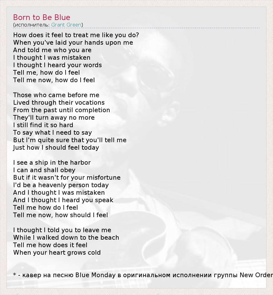 А как ты думаешь, о чем песня "Born to Be Blue" ?
