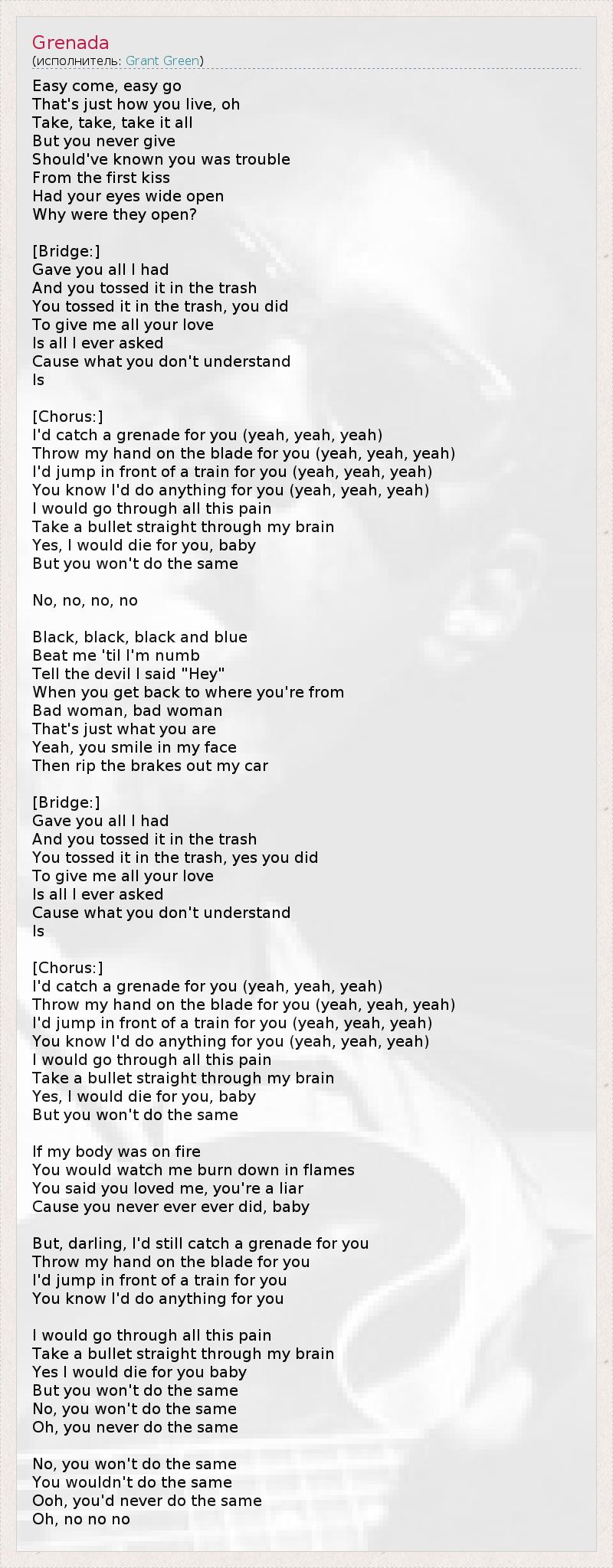 А как ты думаешь, о чем песня "Grenada" ?