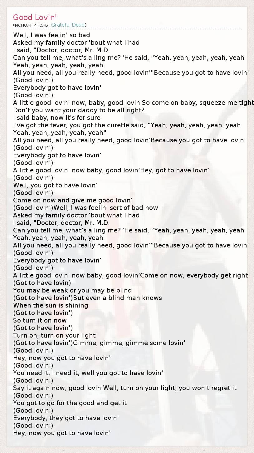 All you need, all you really need, good lovin'"Because you got to have lovin'