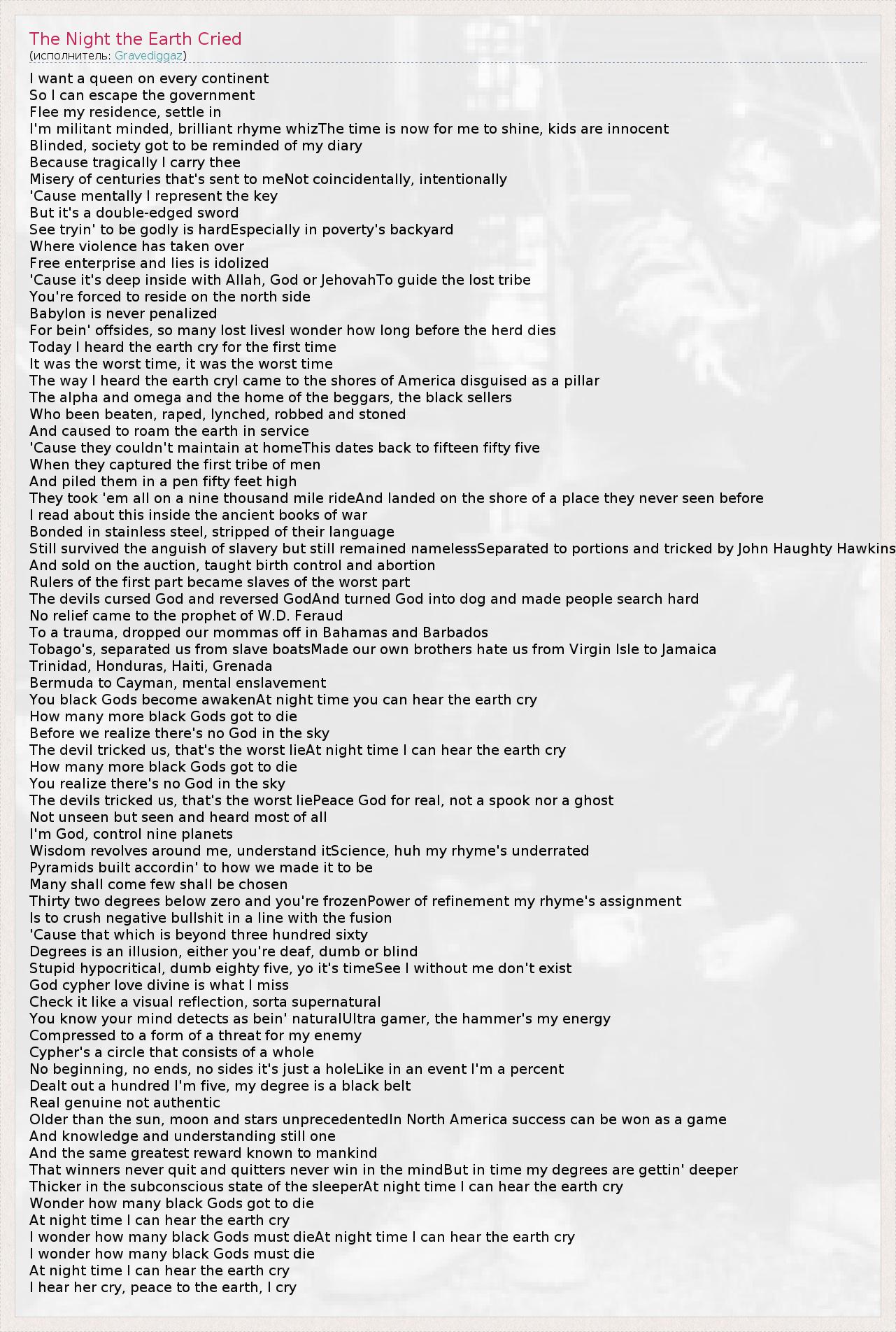 ГлавнаяИсполнителиGravediggazThe Night the Earth Cried