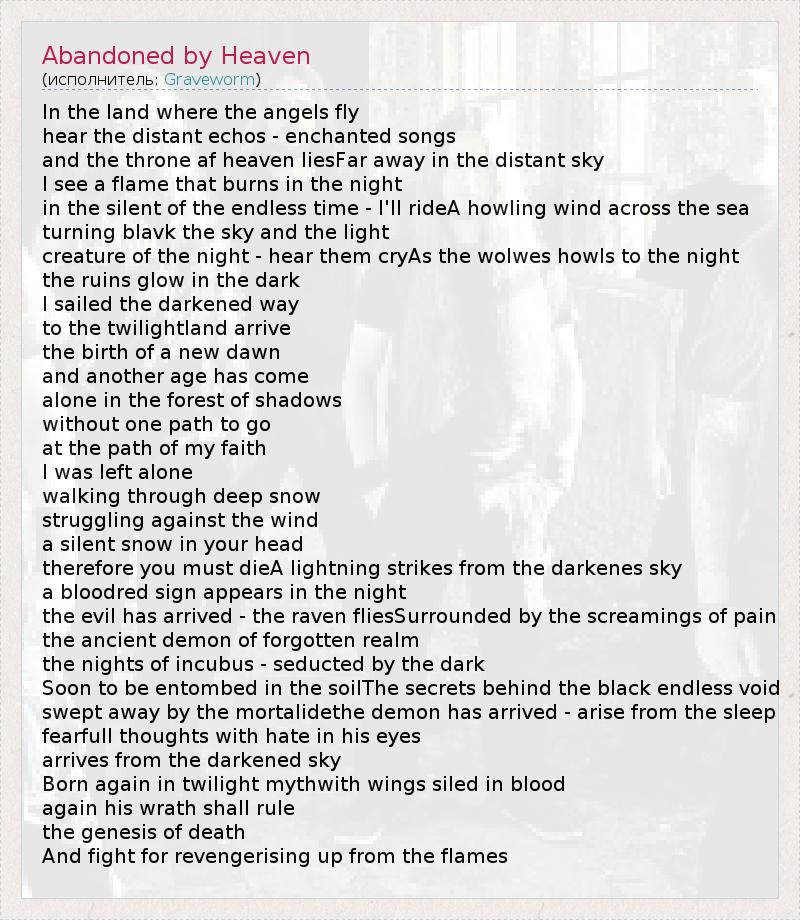 А как ты думаешь, о чем песня "Abandoned by Heaven" ?