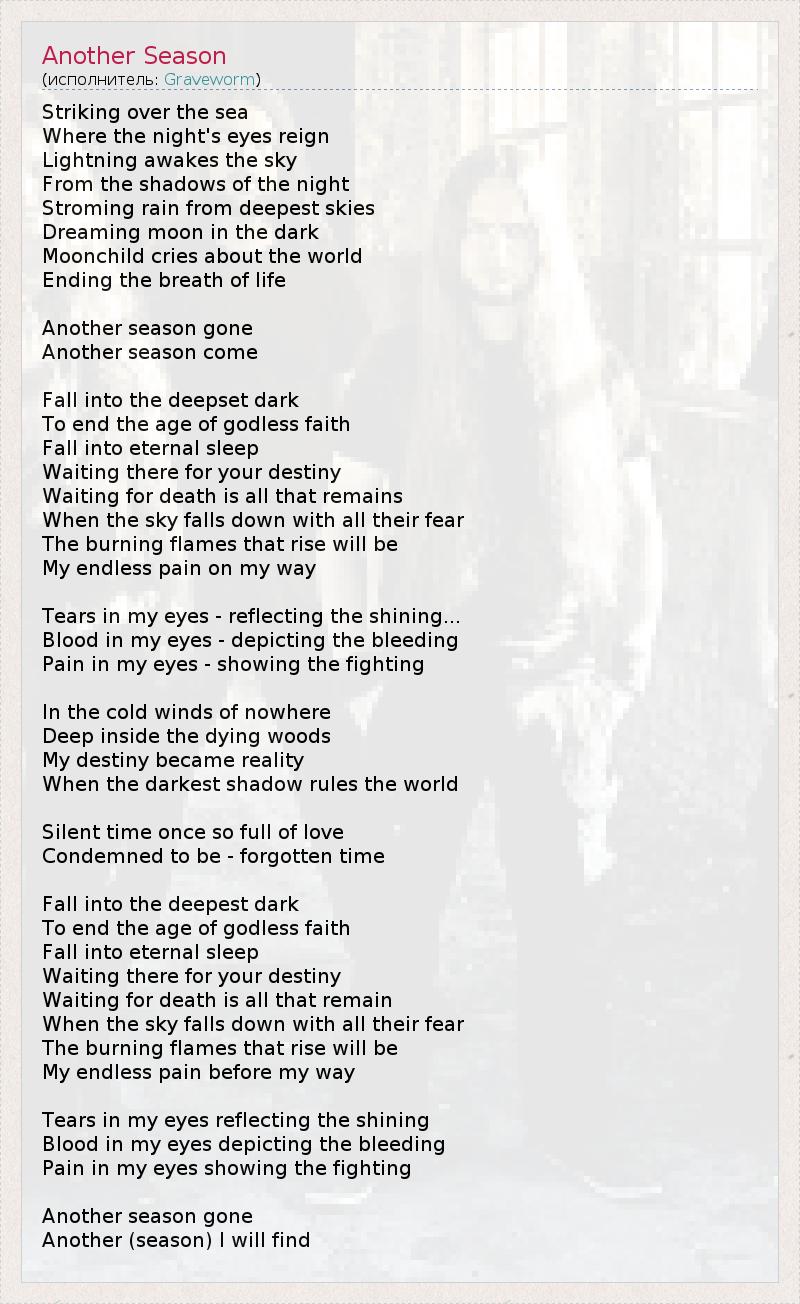 Это интересно:Graveworm (с англ. могильный червь) сформировался в начале 90-х годов, официально группа объявила о своём существовании в 1992 году. Изначально итальянский коллектив из Южного Тироля решили принять роль death metal банды . Специфическое название было подготовлено заранее, когда же группа изменила стиль, вобрав в себя больше атмосферных аспектов, название оказалось уже настолько близким и родным,... продолжение
